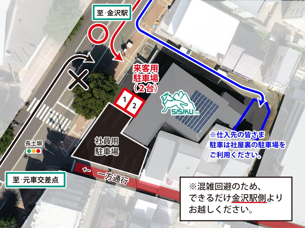 平素より弊社製品をご愛顧賜り、厚く御礼申し上げます。 弊社へご来社の際の駐車場ご利用につきまして、混雑緩和および安全確保のため、 下記図に沿った入庫方法へのご協力をお願い申し上げます。 ご不明な点がございましたら、総務部までお問い合わせ下さい。 ■お客様用駐車場についてのお願い