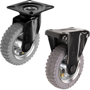 - 空気入車輪は空気圧のクッションにより、凹凸のある床面に対し衝撃をやわらげます。